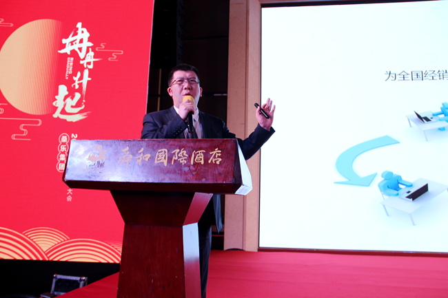 董事長王雪廣先生蒞臨會(huì)議現(xiàn)場并發(fā)表主旨演講,首先,他代表桑樂集團(tuán)全體員工對不辭辛勞,遠(yuǎn)道而來的桑樂家人們表示熱烈的歡迎,并感謝這一年來、三年來、三十年來他們的信任、陪伴和支持。會(huì)議當(dāng)天正值大雪時(shí)節(jié),董事長在現(xiàn)場激情濃厚的氣氛中有感而發(fā),以一首《沁園春·雪》與現(xiàn)場的經(jīng)銷商們共勉,深刻表達(dá)“數(shù)風(fēng)流人物,還看今朝,還看桑樂”的豪邁壯志。他在發(fā)言中強(qiáng)調(diào),桑樂集團(tuán)依靠雄厚的財(cái)力物力加大技術(shù)和產(chǎn)品投入,持續(xù)打擊市場的假冒仿冒產(chǎn)品,在未來桑樂將研發(fā)的“十二生肖”系列產(chǎn)品全面布局市場,創(chuàng)造獨(dú)家產(chǎn)品市場標(biāo)識,令仿冒者望而卻步,同時(shí)集團(tuán)響應(yīng)國家政策,布局多元化產(chǎn)品戰(zhàn)略,強(qiáng)力斥資進(jìn)軍燃?xì)獗趻鞝t領(lǐng)域,深度挖掘市場潛力,開辟藍(lán)海營銷渠道。