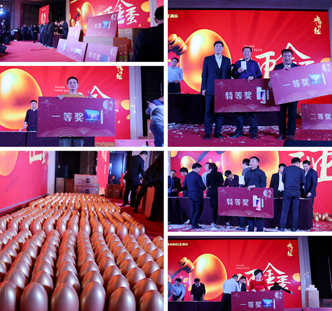 從開場的紅毯造型入場,紅包墻,到印有“冉冉升起”字樣的伴手禮,每一個(gè)環(huán)節(jié)無不體現(xiàn)桑樂的用心和誠意。精彩的砸金蛋環(huán)節(jié)把現(xiàn)場氣氛推向高潮,而在激動(dòng)人心的抽獎(jiǎng)環(huán)節(jié)中,大獎(jiǎng)接踵而來,經(jīng)銷商收獲滿滿,臉上流露的笑容就是對此次大會(huì)滿意最好的詮釋。