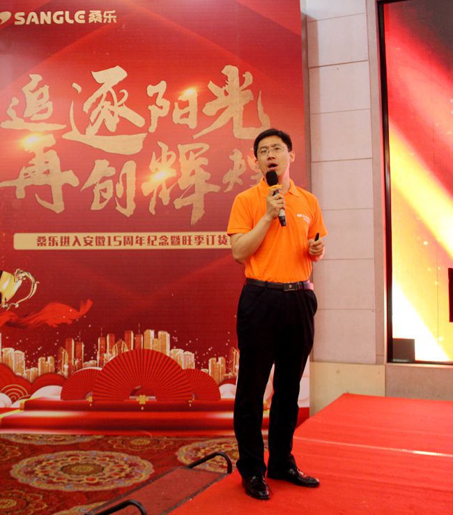 集團王雪廣董事長蒞臨會議現(xiàn)場并發(fā)表主旨演講,首先,他代表桑樂集團對安徽經(jīng)銷商的到來表示熱烈的歡迎,值此桑樂太陽能進入安徽市場15周年之際,感謝桑樂家人對公司的信任和支持。董事長從自身經(jīng)商經(jīng)歷講起,講到做任何事情都要堅定信心,執(zhí)著,忠誠自己的事業(yè),以平穩(wěn)的心態(tài)發(fā)展自己的事業(yè)。桑樂30年的發(fā)展,證明桑樂是具有品牌和內(nèi)涵的企業(yè)。在經(jīng)濟發(fā)展日新月異的今天,產(chǎn)業(yè)布局競爭激烈,桑樂的優(yōu)勢在于技術(shù)優(yōu)勢,打造桑樂“環(huán)保、節(jié)能、綠色”的產(chǎn)業(yè)布局,做好終端市場。2018年是桑樂入駐安徽15周年,安徽充分發(fā)揮鄉(xiāng)鎮(zhèn)市場的區(qū)域優(yōu)勢,市場厚積薄發(fā),業(yè)績突出,希望今后的日子里,公司和經(jīng)銷商共同成長,共同發(fā)展。安徽工程市場近年來也有重要突破,尤其是在平板工程領(lǐng)域滿足了高端用戶的市場需求,公司將會從技術(shù)、價格、服務(wù)等多個角度進行扶持。