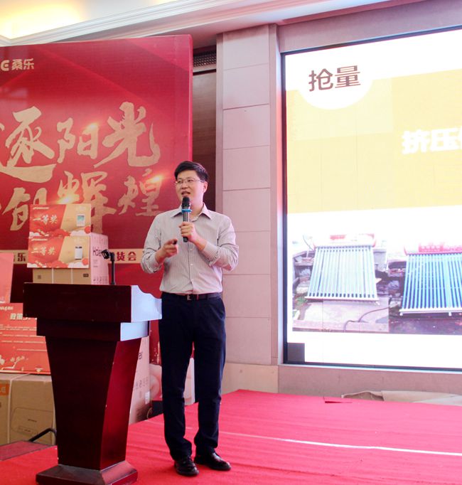 市場部部長國升進(jìn)行了《以舊換新選桑樂》啟動宣講,桑樂集團(tuán)“紅五月”以舊換新正式啟航。桑樂作為全國知名太陽能品牌、山東省名牌,品牌知名度美譽(yù)度高,家喻戶曉,更有知名央視主持人倪萍傾情代言,值此桑樂太陽能30年發(fā)展之際,產(chǎn)品配合中國風(fēng)的產(chǎn)品設(shè)計,今年新推出的倪萍推薦款、狗年定制版的新款熱水器,贏得了市場好評。2018年集團(tuán)布局全國戰(zhàn)略,穩(wěn)扎穩(wěn)打,集中突破,將“以舊換新”進(jìn)行到底。太陽能以舊換新,就選30年的桑樂! 選30年的大品牌,用30年的好產(chǎn)品,交30年的好朋友!