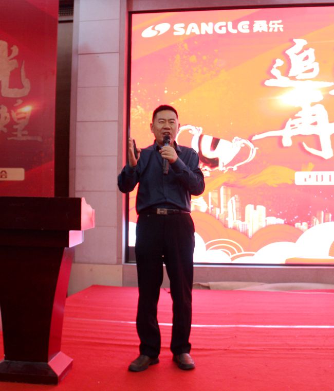 集團(tuán)王雪廣董事長蒞臨會議現(xiàn)場并發(fā)表主旨演講,首先,他代表桑樂集團(tuán)對山東經(jīng)銷商的到來表示熱烈的歡迎,并感謝他們對公司的信任和支持。山東市場是桑樂集團(tuán)的大本營,桑樂集團(tuán)精耕細(xì)作省內(nèi)市場,取得了輝煌的業(yè)績。董事長從自身經(jīng)商經(jīng)歷講起,講到做任何事情都要堅定信心,執(zhí)著,忠誠自己的事業(yè),以平穩(wěn)的心態(tài)發(fā)展自己的事業(yè)。桑樂和經(jīng)銷商要合作共贏,成為密切的戰(zhàn)略合作伙伴!要堅持執(zhí)著,桑樂的未來和榮耀靠大家共同努力!桑樂的優(yōu)勢在于技術(shù)優(yōu)勢,打造桑樂“環(huán)保、節(jié)能、綠色”的產(chǎn)業(yè)布局,做好終端市場,大家攜手并肩做好桑樂品牌的推廣,珍惜桑樂的品牌榮譽(yù)!