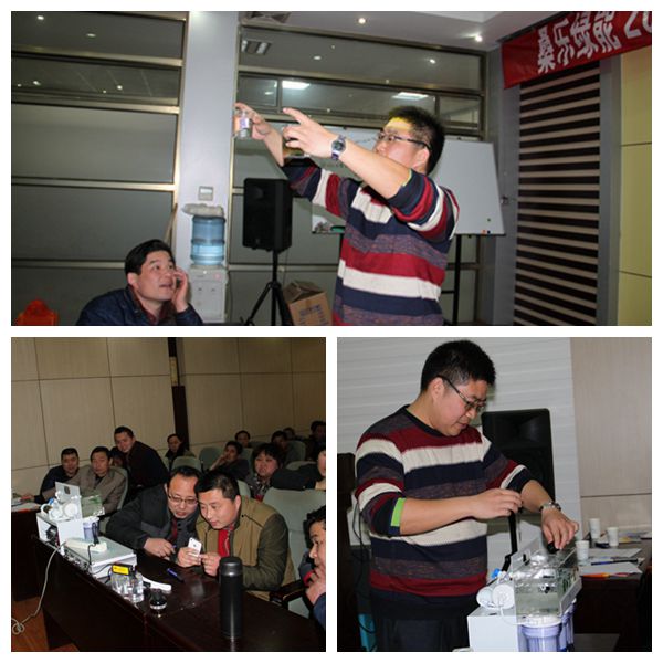 會上對大家關(guān)注的飲用健康水進行了知識培訓(xùn),凈水機專家楊煒烽經(jīng)理著重講解了凈水機推廣,并當(dāng)場給經(jīng)銷商做了凈水機演示,當(dāng)自來水經(jīng)電解后出現(xiàn)多種雜質(zhì)時,經(jīng)銷商都熱情高漲,更真正認(rèn)識到健康水的重要性。